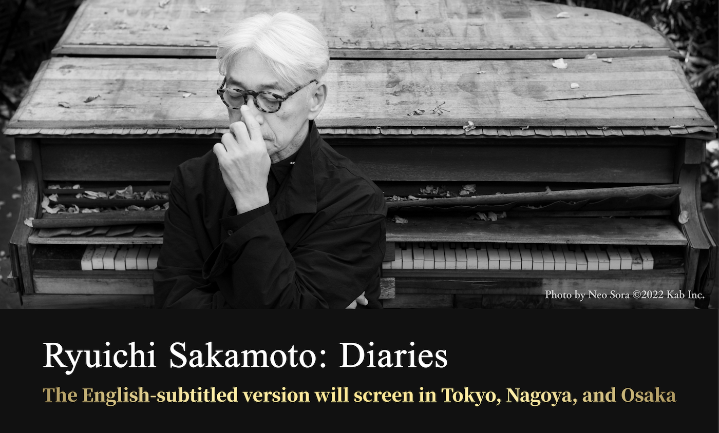 We are pleased to announce you that “Ryuichi Sakamoto: Diaries” (directed by Takeo Omori), a documentary tracing the final three and a half years of world-renowned musician Ryuichi Sakamoto, is now playing in theaters nationwide and will also be screened in Tokyo, Nagoya, and Osaka with English subtitles. 。